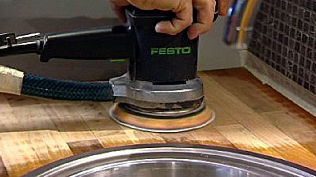 Koneet voitiin liittää poistoletkuilla tehokkaisiin pölynimureihin. Ennen hiomista suojattiin teipillä silikonisaumat sekä altaan ja keraamisen liesitason reunat.