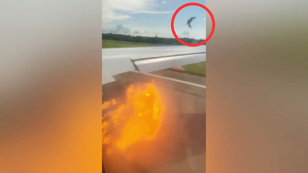 Katso, kuinka turbiini puski liekkejä lintuparven osuttua siihen!