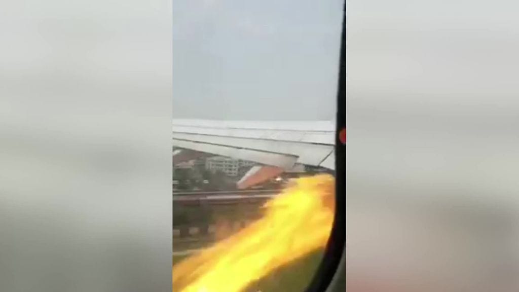 Matkustajat pystyivät näkemään lentokoneen ikkunasta, kuinka koneen vasen moottori alkoi puskea liekkejä ja savua ilmaan.