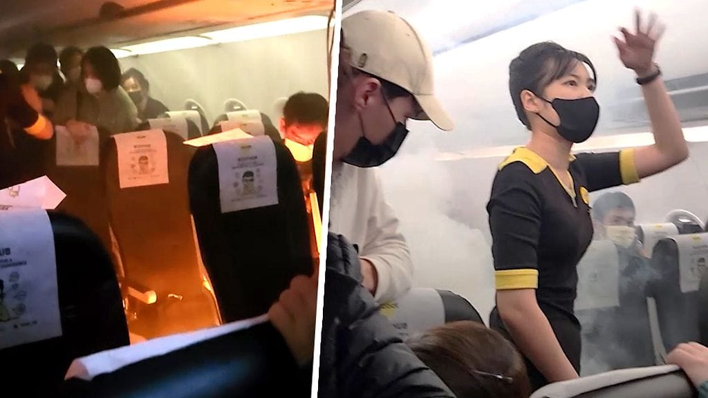 Lennolla matkustajana ollut Angie Ton kuvasi videolle hurjan tilanteen, kun liekit roihusivat matkustamossa.