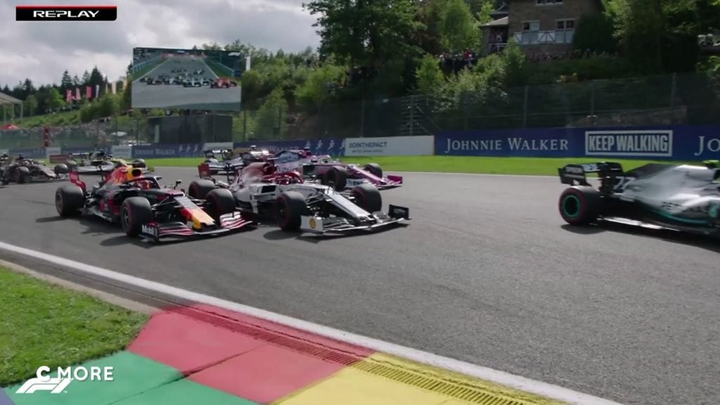 Verstappen möhläsi ensin lähdön, jossa moni kuski ohitti hänet. Verstappen yritti paikata tätä myöhäisellä jarrutuksella, jolla oli kuitenkin rajut seuraamukset.