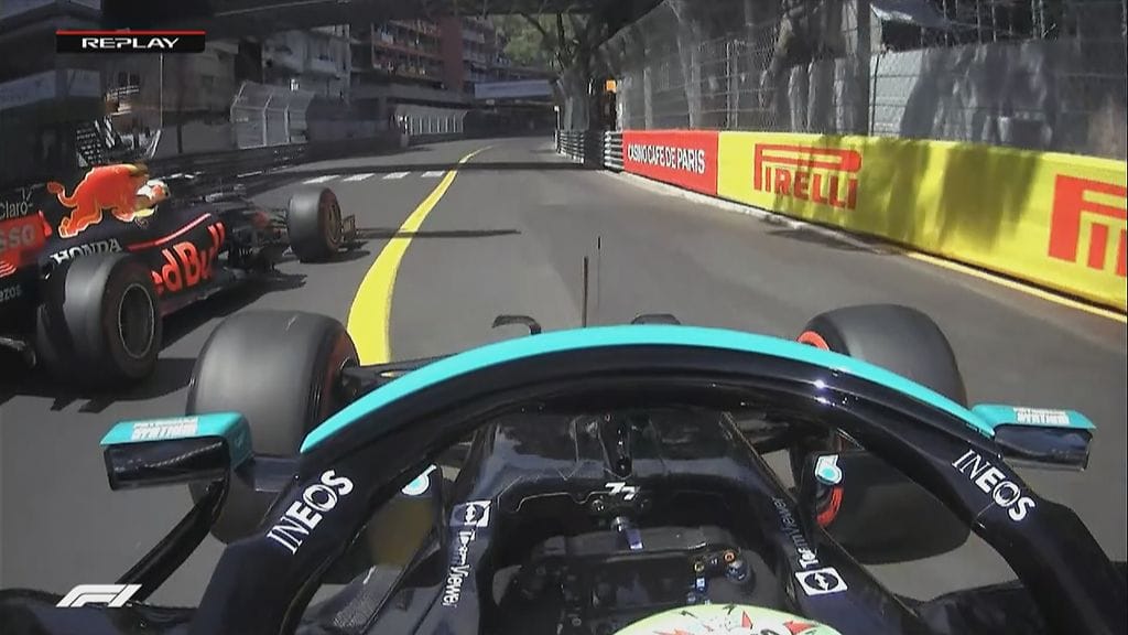 Videoilla Monacon GP:n startti eri kuvakulmista.