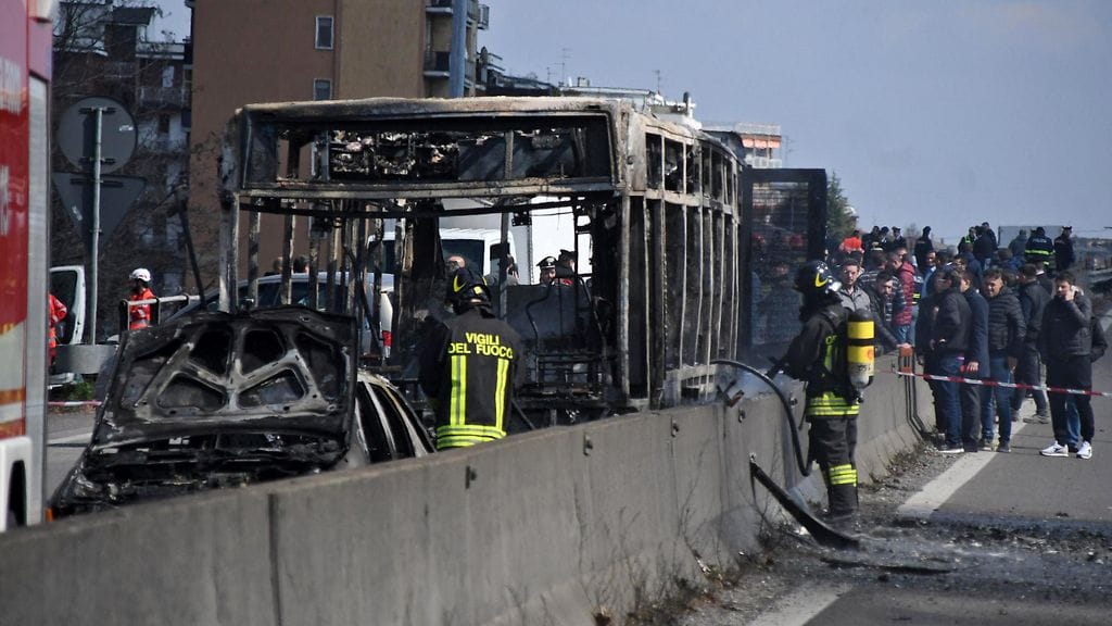 Italiassa koulubussin kuljettajan epäillään sytyttäneen lapsia täynnä olleen bussin tuleen keskiviikkona aamulla.