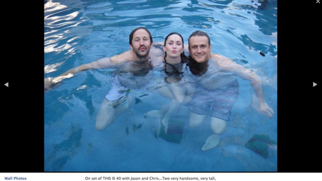 – This is Forty -elokuvan kuvauksissa Jasonin ja Chrisin, kahden komean, pitkän ja erittäin hauskan miehen, kanssa, Fox oli kirjoittanut kuvan yhteyteen.