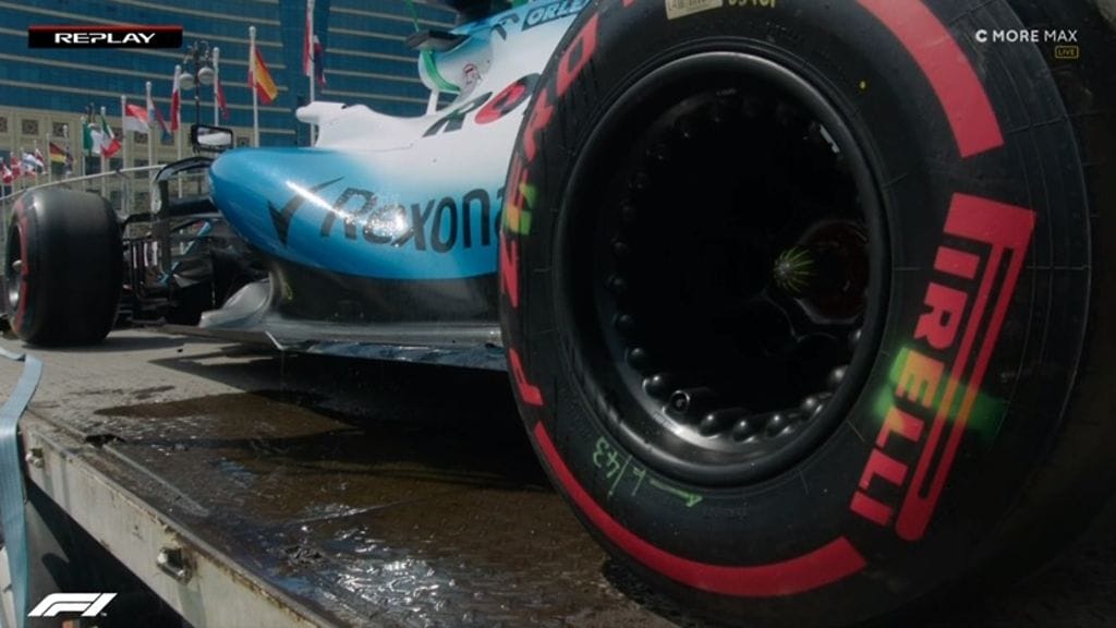 Tulokaskuski George Russell törmäsi ennen vappua ajetun kisan perjantaiharjoituksissa kaivonkanteen, joka oli noussut paikoiltaan radan pinnassa. Williamsin auto otti täräyksestä ison loikan.