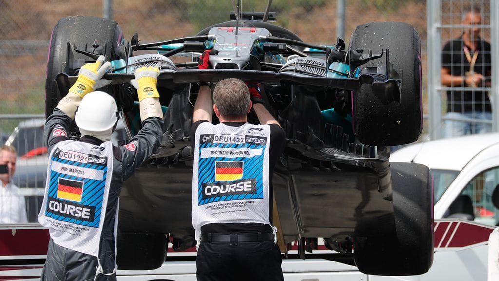 Hamiltonin aika-ajo jäi kesken jo ensimmäisessä osiossa, kun hydrauliset paineet katosivat rajusti kanttikivien yli menneen ajolinjan jälkeen. Tallipäällikkö Toto Wolff ehti jo kommentoida brittikanava Channel4:lle, että auton vika tuli mutkassa tulleesta vauriosta.