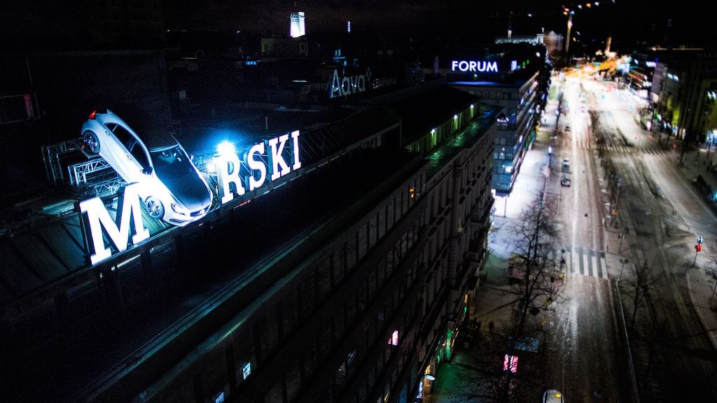 Uusi A-sarjan henkilöauto on hotelli Marskin katolla hoitamassa a-kirjaimen virkaa kahden viikon ajan.