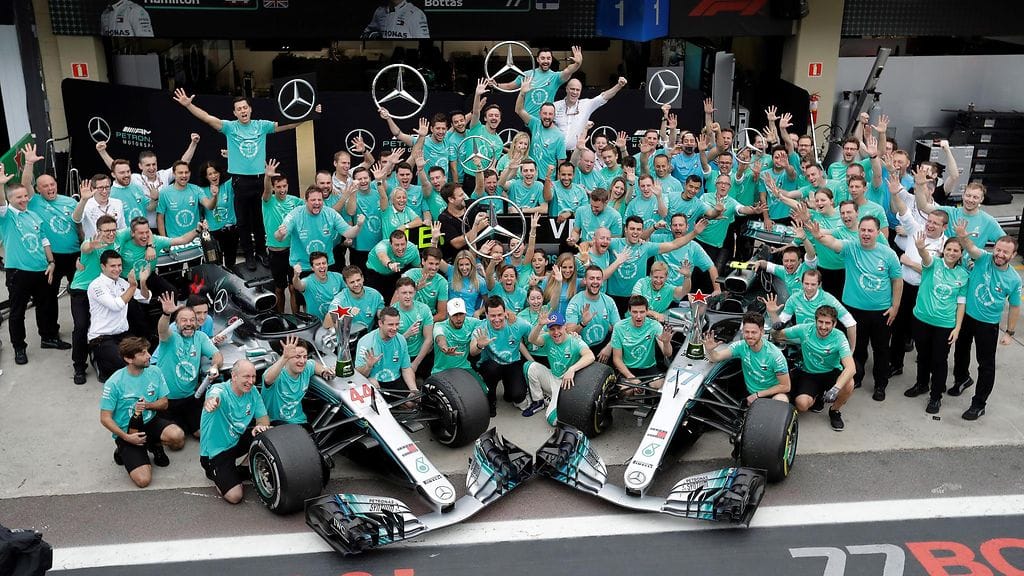 Mercedes varmisti sunnuntaina Brasiliassa viidennen perättäisen tuplamestaruutensa. Vastaavaan on Formula ykkösissä kyennyt aiemmin vain Ferrari Michael Schumacherin aikana 2000-04.
