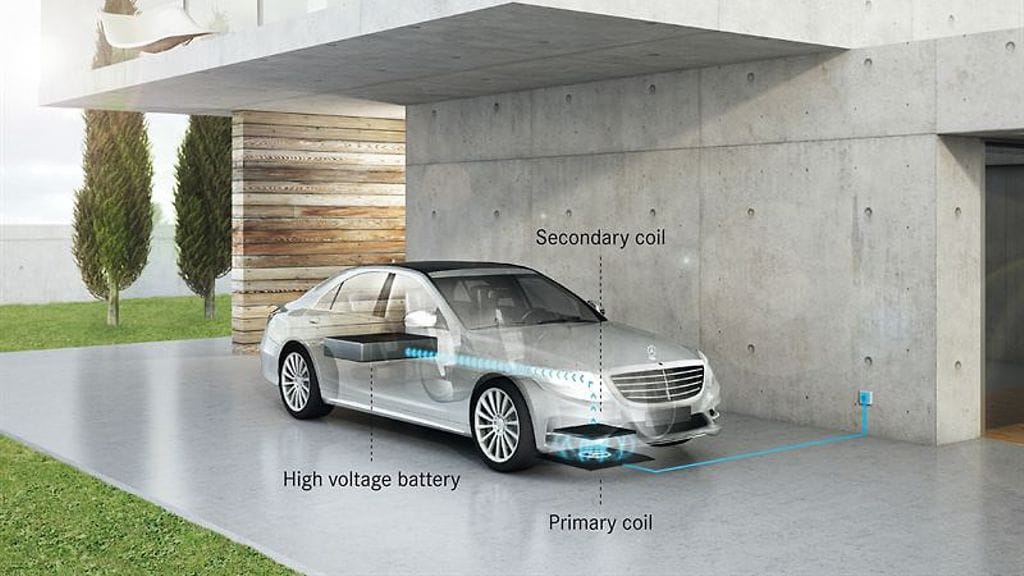 Mercedes-Benz on kehittänyt induktiolatausta vuodesta 2015 lähtien. Tuotekehitys on nyt siinä vaiheessa, että valmistaja tarjoaa vuonna 2017 järjestelmää lisävarusteena S-sarjan pistokehybridiin. Latausjärjestelmä perustuu kahteen käämiin, joiden väliin syntyy magneettikenttä. Ensiökäämi voidaan sijoittaa esimerkiksi autotallin lattiaan ja toisiokäämi sijaitsee auton pohjassa. Kun auto ajetaan oikealle kohdalle, tulee tästä kuljettajalle ilmoitus ja lataus käynnistyy automaattisesti. Käämeillä saavutettua latausteho on 3,6 kW ja latauksen hyötysuhde on parhaimmillaan lähes 90 prosenttia.