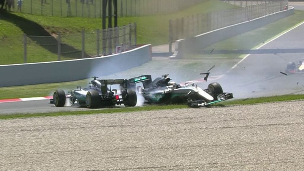 Rosberg ohitti heti startin jälkeen paalulta ampaisseen Hamiltonin, mutta nelosmutkassa rysähti. Hamilton yritti ohi Rosbergista, mutta ajautui leveäksi nurmikolle. Hamilton menetti autonsa hallinnan ja törmäsi kohtalokkaasti tallikaveriinsa.