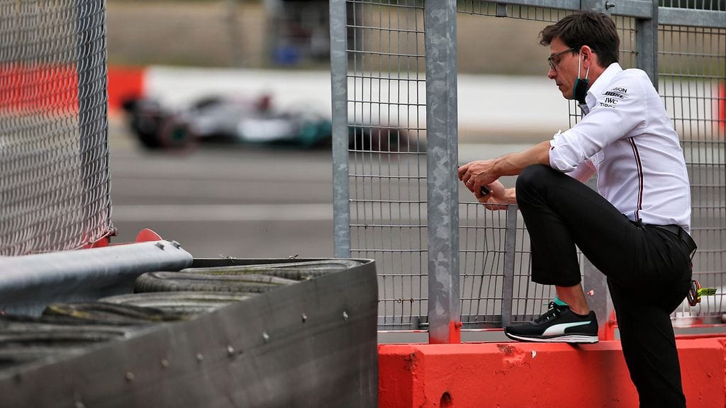 Wolff ajeli Britannian GP:n perjantaiharjoituksissa potkulaudoilla kilpaa tiimin teknisen johtajan James Allisonin kanssa. Hän hoiti omalla laudallaan vain lisämassan ja takasiiven roolia, sillä ajamisesta vastasi hänen sihteerinsä.