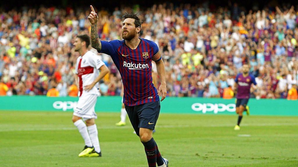 Pääkuvan videolla Lionel Messin 1-1-tasoitus Huescaa vastaan – ensin vastustaja kahville, sitten pallo painavalla kudilla takakulmaan.