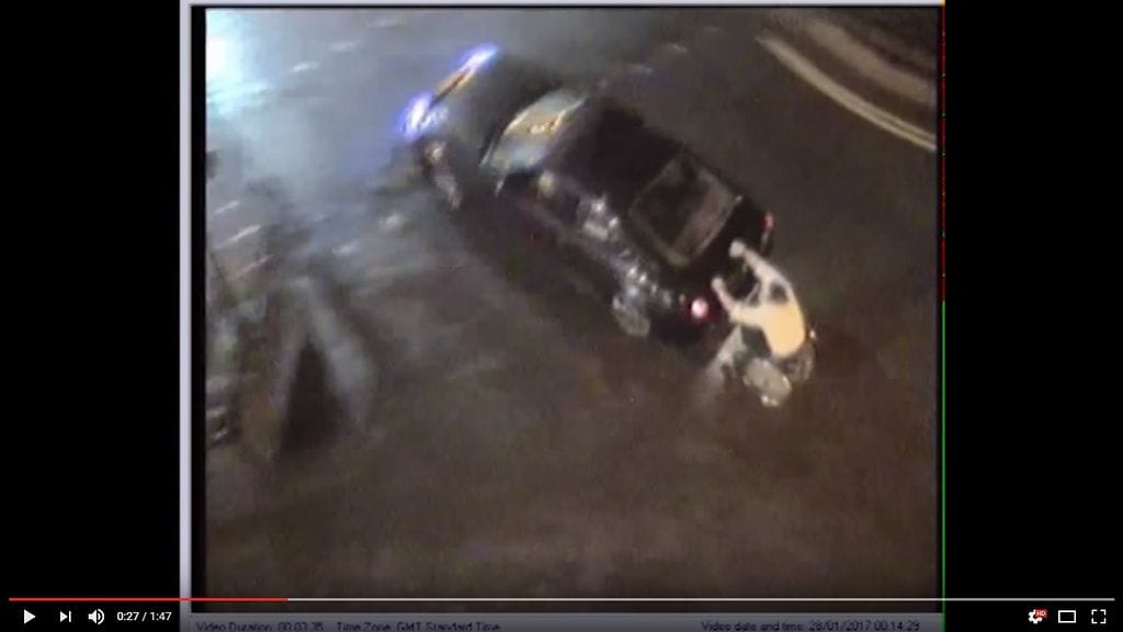 20-vuotias Michael Ward tuomittiin kahden vuoden ajokieltoon sen jälkeen, kun valvontakamera paljasti hänen törttöilynsä. Kortin hyllyttämisen lisäksi hänelle määrättiin 200 tuntia yhdyskuntapalvelua ja lätkäistiin käteen vajaan 200 euron sakko.