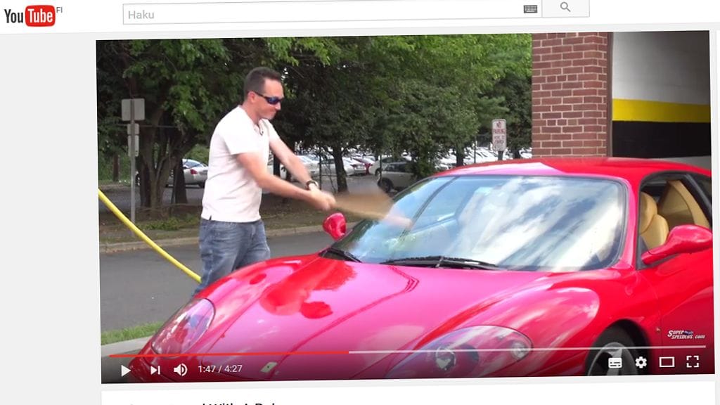 YouTube-persoona Rob Ferretti lyö nettivideolla tuulilasin rikki Ferrarista baseball-mailalla. Hänen tarkoituksena oli yllättää katsojat räväkällä tempauksella ja sitten ottaa esiin ehjä tuulilasi ja vaihtaa se autoon.