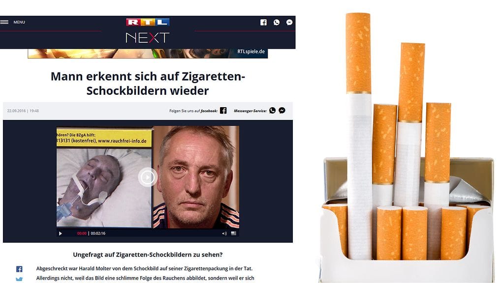 Saksalainen Harald Molter yllättyi toden teolla tupakka-askin vuoksi, kertoo rtlnext.rtl.de. Molter löysi itsensä askin varoituskuvasta, joka pelottelee tupakoinnin seurauksilla.