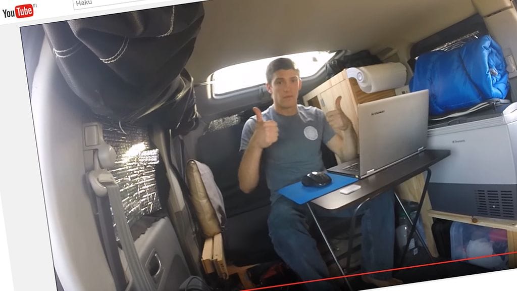 Yhdysvaltalainen Nate on asunut 3,2 neliön kokoisessa Honda Elementissään jo yhdeksän kuukautta. Autoa on muokattu reippaalla kädellä paremmin asumiseen soveltuvaksi, mutta tilaa ei siitäkään huolimatta ole liiaksi.