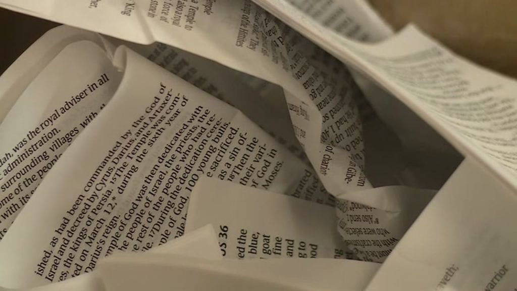 Mies vandalisoi kirkkoa hatussa, jossa luki "rakastan Jeesusta". Hän rikkoi ikkunan, repi Raamattuja ja ruiski spraymaalia seinille.