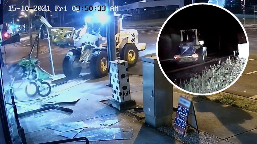 Videolle tallentui tilanne, kun 41-vuotias mies puski varastetulla etukuormaajatraktorilla moottoripyöräliikkeen näyteikkunasta läpi.