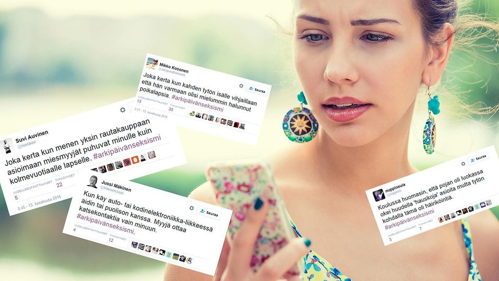 Hashtag #arkipäivänseksismi on kirvoittanut tänään lyhyessä ajassa mielenkiintoisia puheenvuoroja Twitterissä. Aiheella otetaan kantaa sekä naisten että miesten kohtaamaan seksismiin, joka korostaa sukupuolten eriarvoisuutta. Naiset kertovat kohtaavansa edelleen tytöttelyä ja ennakkoluuloja rautakaupassa asioimisesta lähtien. Miehet puolestaan ovat kohdanneet seksismiä muun muassa isän roolissa ja työelämässä.