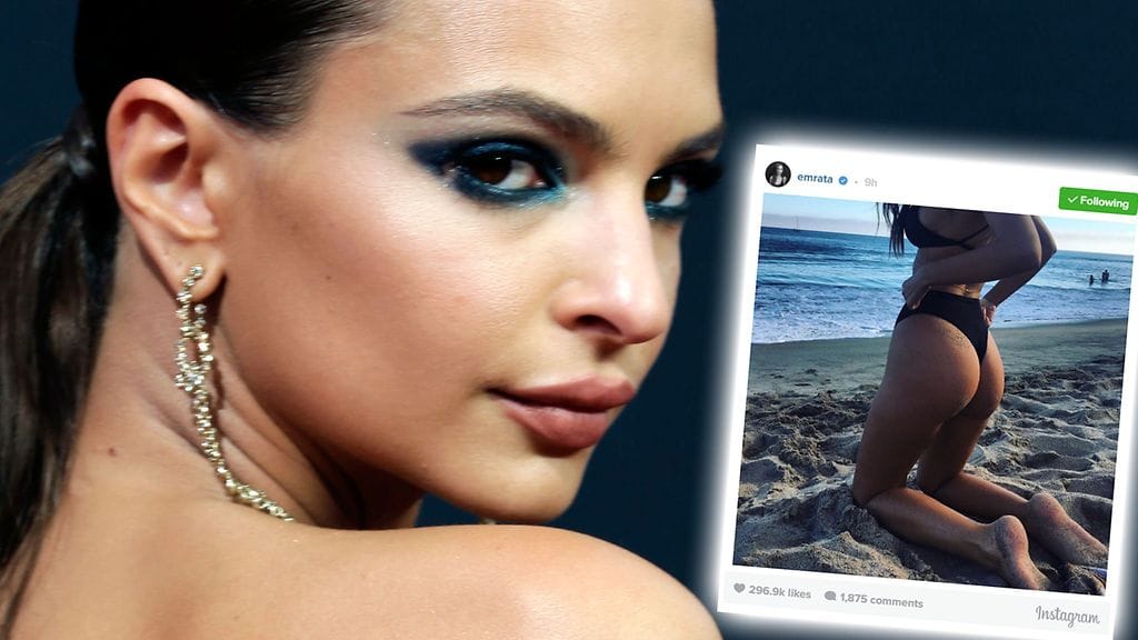 Ratajkowski lisäsi Instagram-tililleen kaksi kuvaa rantatunnelmista. Molemmat kuvat on otettu takaapäin ja pääosassa ovat Ratajkowskin pyöreät pakarat.