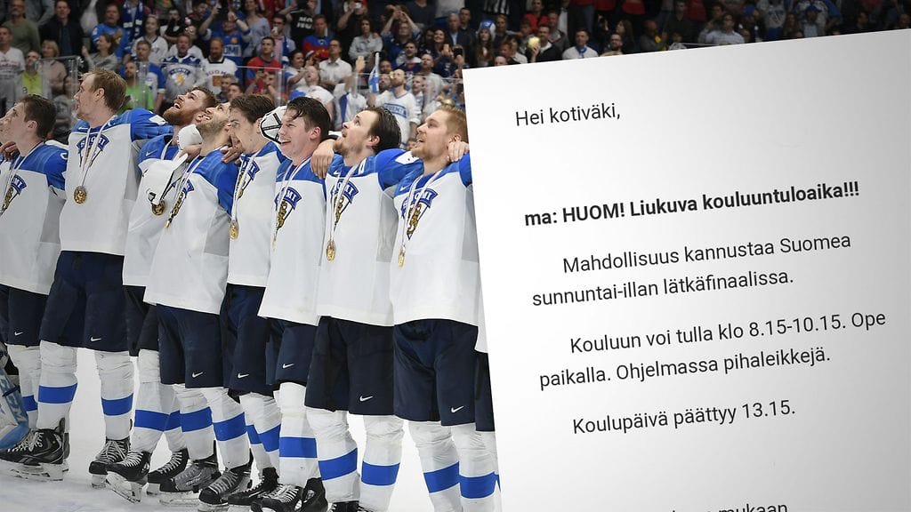 Hyvinkäällä Hämeenkadun koululla on ymmärretty hienosti Suomen jääkiekon MM-kisojen finaalipelin merkitys.