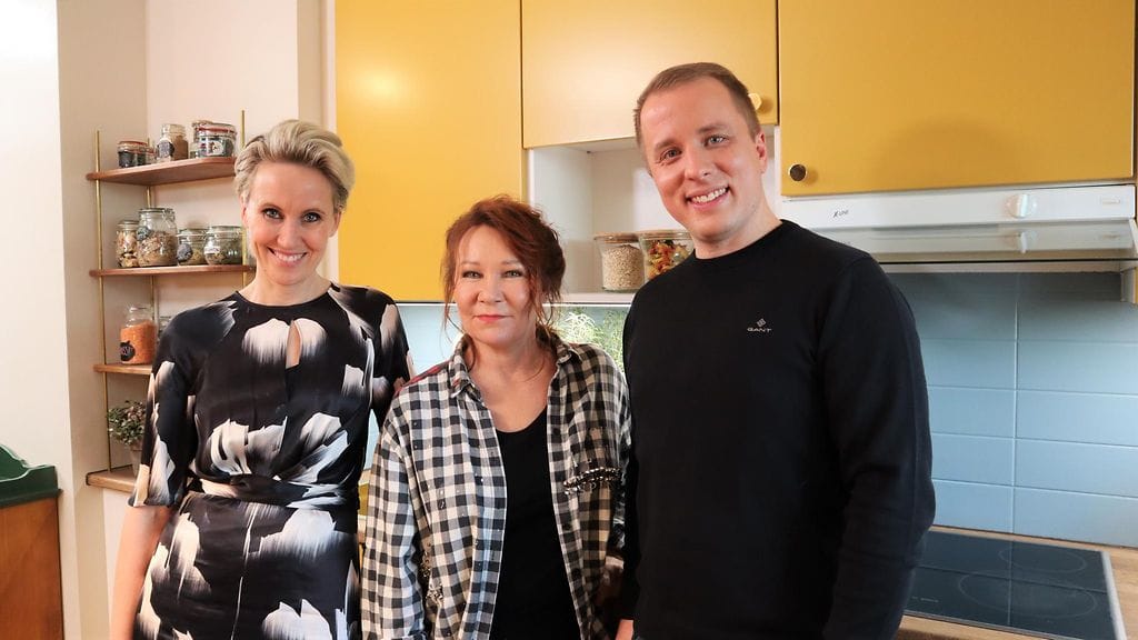 Vicky Rosti esittelee keittiöstä löytyvää "Mika Häkkisen murattia".