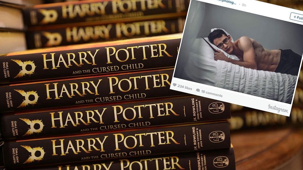 Malli Zachary Howell poseeraa kuumissa kuvissa pyöreät silmälasit päässään, salaman muotoinen arpi otsassaan ja taikasauva kädessään samalla tiukkoja vatsalihaksiaan esitellen.