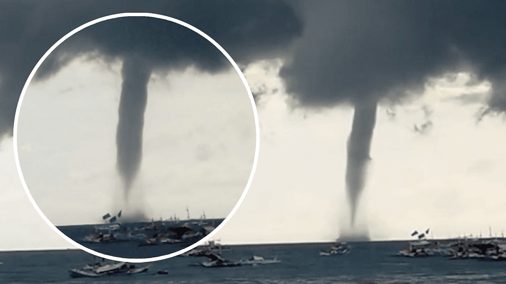 Veden päällä liikkuva tornado eli vesipatsas oli osua kalastusaluksiin Filippiineillä.