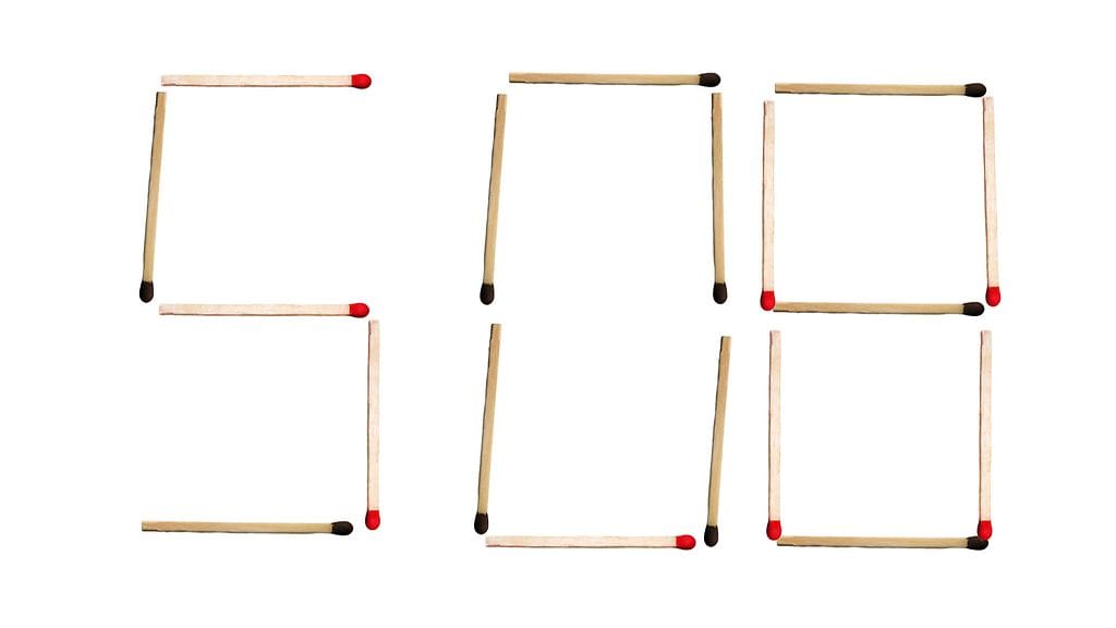 Kuvassa on luku 508 tulitikuista muotoiltuna. Miten suureksi luvuksi voit muuttaa sen, jos saat siirtää kahta tikkua?