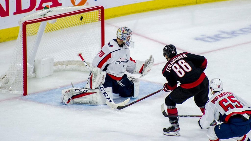 Carolina Hurricanes tasoitti NHL:n pudotuspelien avauskierroksen ottelusarjan Washington Capitalsia vastaan 2–2:een voittamalla hallitsevan mestarin maalein 2–1. Ottelua oli seuraamassa myös Pohjois-Carolinasta kotoisin oleva tennistähti John Isner.