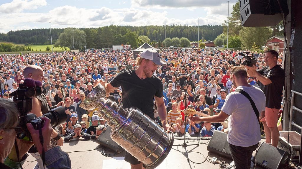 LUE MYÖS: Mikä sisääntulo! Näin Mikko Rantanen toi Stanley Cup -pokaalin Nousiaisiin – rohkea temppuilu jätti jälkensä