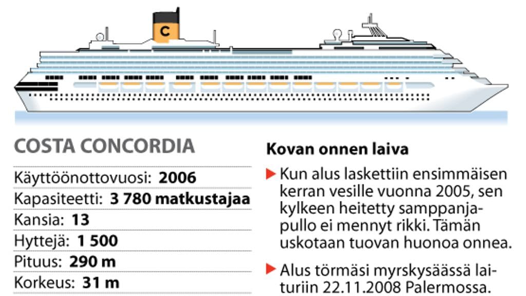 Risteilyalus Costa Concordialla oli haverin tapahtuessa noin 4 200 matkustajaa.