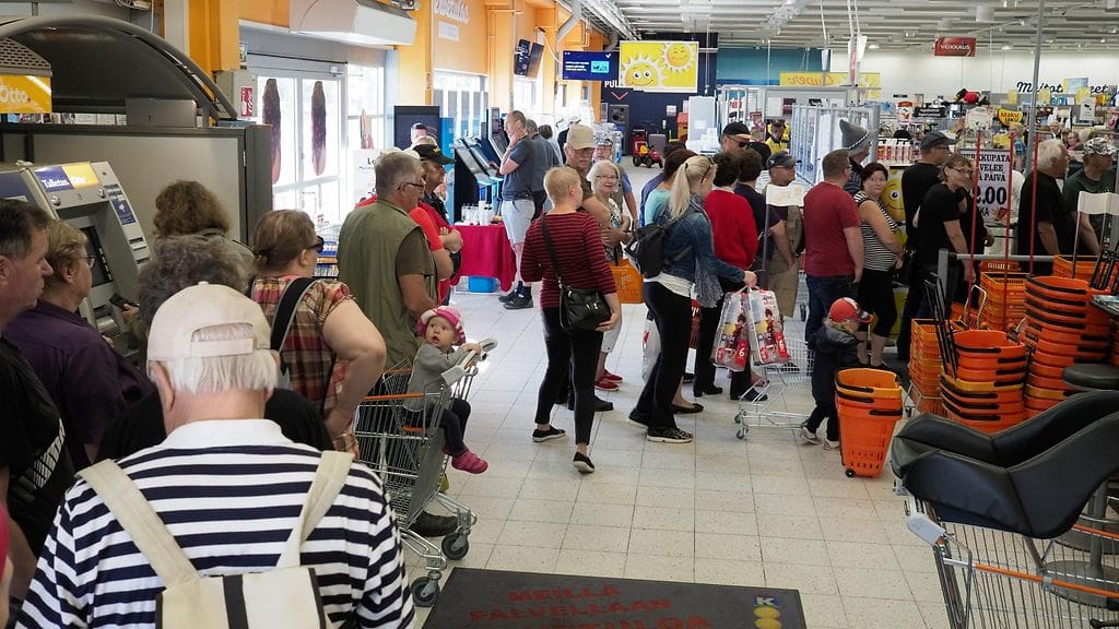 – Tuhat palaa tässä on, mutta katsotaan miten pitkälle se riittää. Jos tällainen mylläkkä on, niin pitää varmaan alkaa leipomaan, toteaa kauppias Jyrki Huttunen.