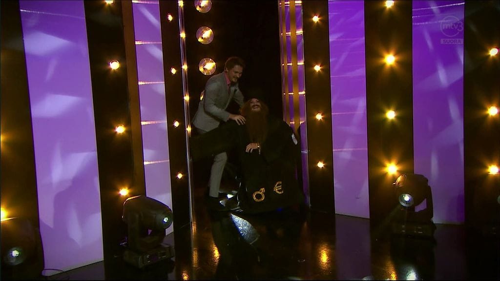 Minka Kuustoselle näytettiin suorassa lähetyksessä pätkä hänen kautensa Hahmot vaihtoon -tehtävästä. Tuolloin näyttelijät ottivat pussista lapun, jossa luki sketsihahmo, jota näyttelijän oli määrä näytellä. Kuustonen veti tuolloin pussista näyttelemän Isä Nitron nimen.