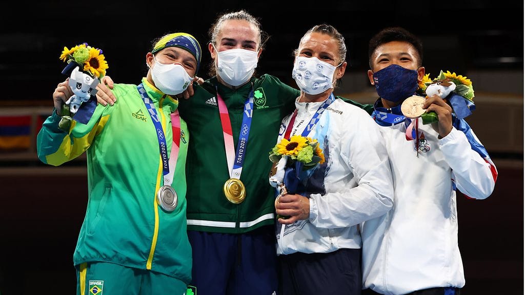 Mira Potkonen sai sunnuntaina pronssimitalin kaulaansa Tokion olympialaisten mitaliseremoniassa.
