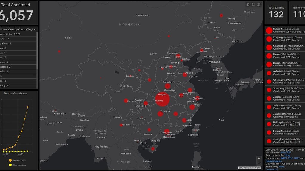 Yhdysvaltain Baltimoressa sijaitseva Johns Hopkinsin yliopisto on kehittänyt nettisivun, jossa pääsee seuraamaan koronaviruksen tartuntatilannetta reaaliajassa.