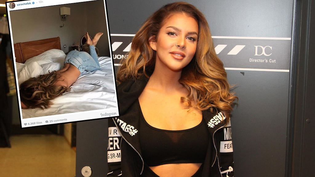 Vuoden 2012 Miss Suomi Sara Chafakin tuore Instagram-päivitys on kuumaa katsottavaa. Julkaisemassaan kuvassa tumma kaunotar poseeraa yläosattomissa piehtaroiden sängyllä.