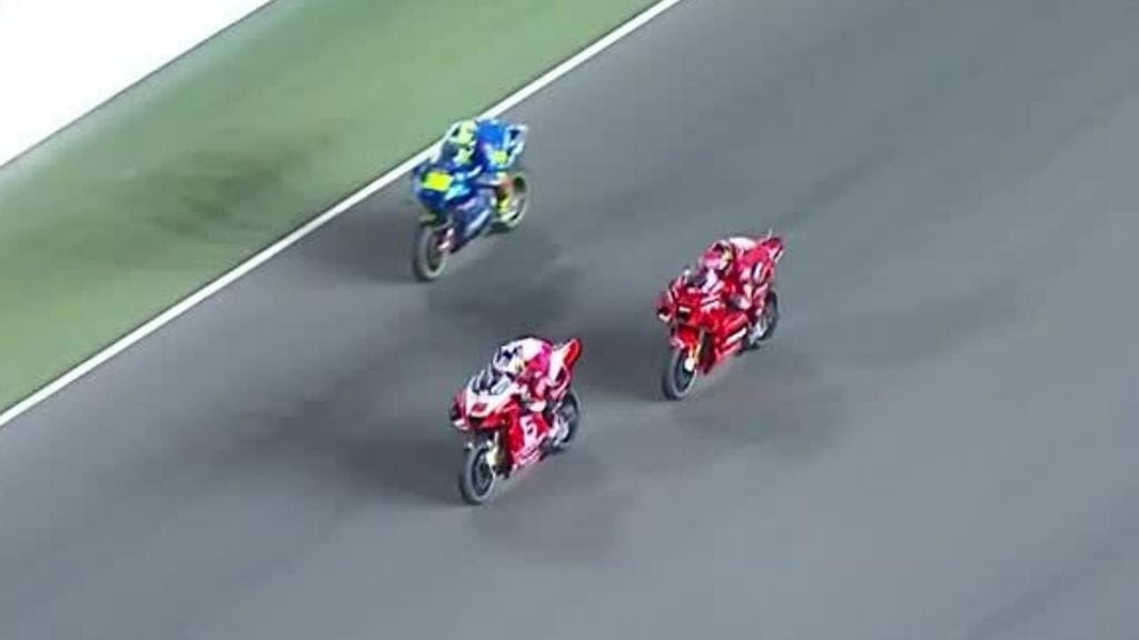 Koko viikonlopun ennätysnopeuksia kirjannut Ducati ampaisi neljällä pyörällään heti lähdössä neloisjohtoon.