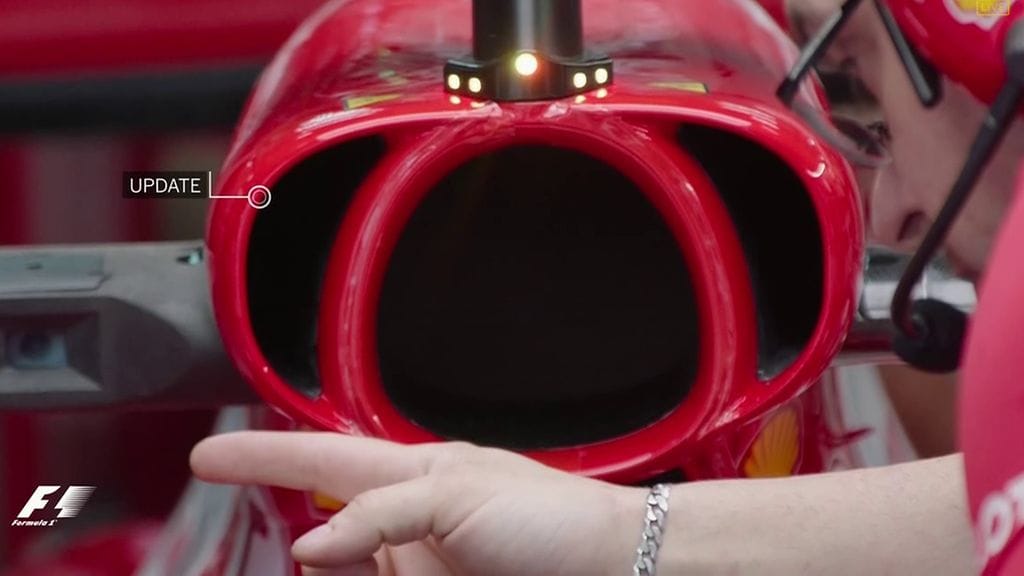 Ferrari toi Malesian kisaviikonlopun kuuman kosteisiin olosuhteisiin uusia päivitysosia, joista mielenkiintoisin on huomattavasti aiempaa suurempi ilmanottoaukko. Sivuponttoonien sijaan Ferrari ohjaa nyt entistä enemmän ilmaa sisään kuskin pään yläpuolelta.