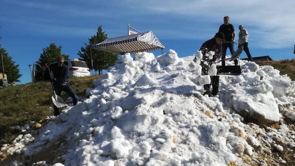 Juhannussäästä vitsailu on saavuttanut uuden ulottuvuuden Hämeenlinnassa, jossa keskikesän kunniaksi kasattiin pulkkamäki paikallisia ilahduttamaan. Luonnonlunta paikkakunnalla ei toukokuun helteiden jäljiltä ole, vaan lunta säilytettiin viljasiilossa.