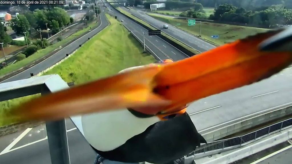 Brasilian Campinasin osavaltiossa tallentui videolle erikoinen hetki, kun utelias tukaanipariskunta kiinnostui kovasti moottoritien läheisyyteen pystytetystä liikennekamerasta.