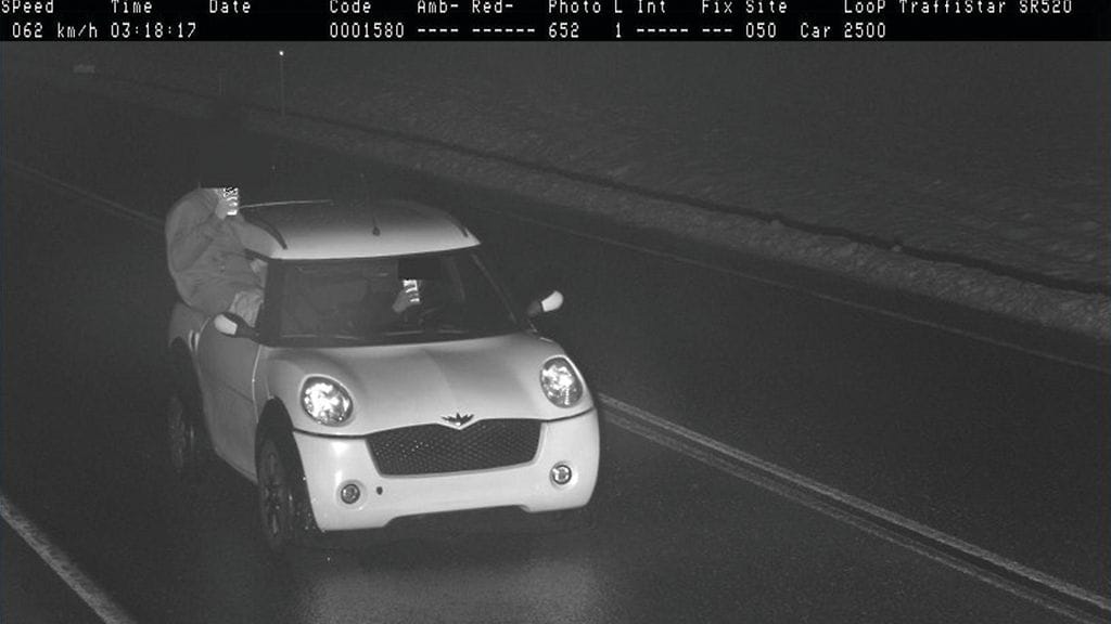 Pastersteinin mukaan mopoauto tallentui nopeusvalvontakameraan 17. joulukuuta eli sunnuntain vastaisena yönä kolmen jälkeen.
