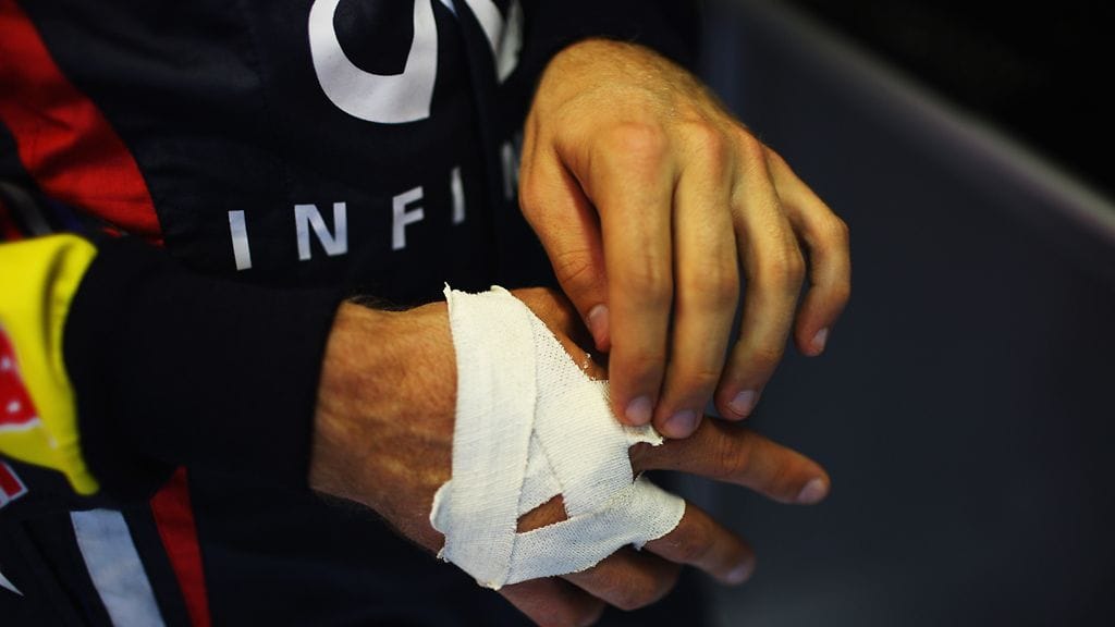 Red Bullin tallipäällikkö Christian Horner kertoi, että Vettel oli saanut haavan kämmeneensä tällä viikolla. Siteen tarkoituksena on estää bakteereja pääsemästä haavaan.