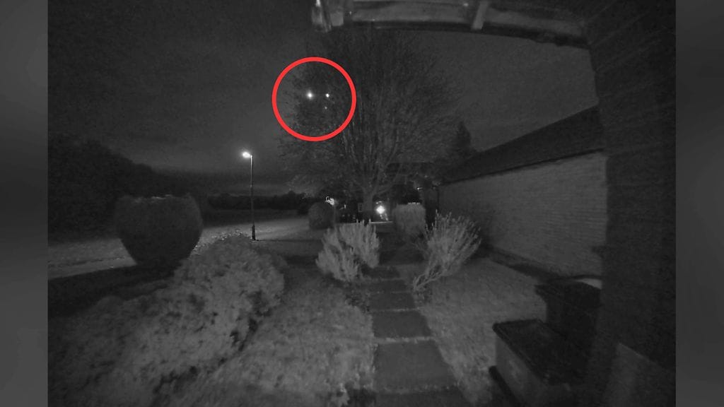 Ovikameraan tallentui kolmen tunnistamattoman valopilkun lento yöllisellä taivaalla.