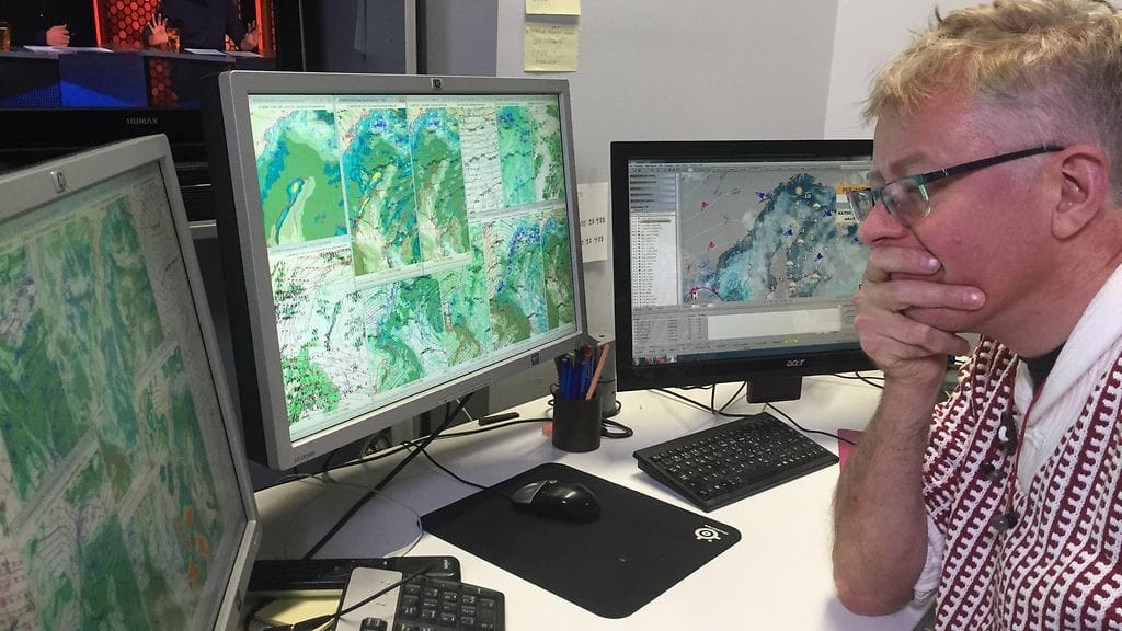 – Lämpötila laski vasta iltapäivällä pakkaselle, Pouta sanoo sääkarttojensa äärestä.