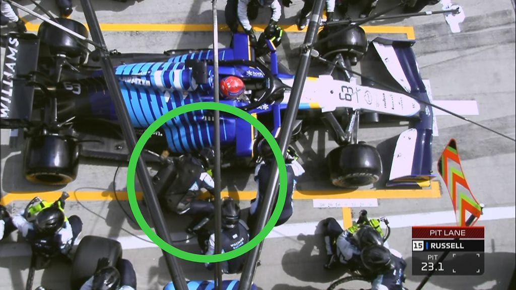 Williams yritti antaa varikolla autolleen "tekohengitystä" lisäämällä ilmanpainetta kyljestä sisään. Tv-kuvissa näkynyt tilanne oli varsin epätavallinen. Williams ei tarkentanut, mistä voimayksikön pneumaattisessa ongelmassa oli tarkalleen kyse.