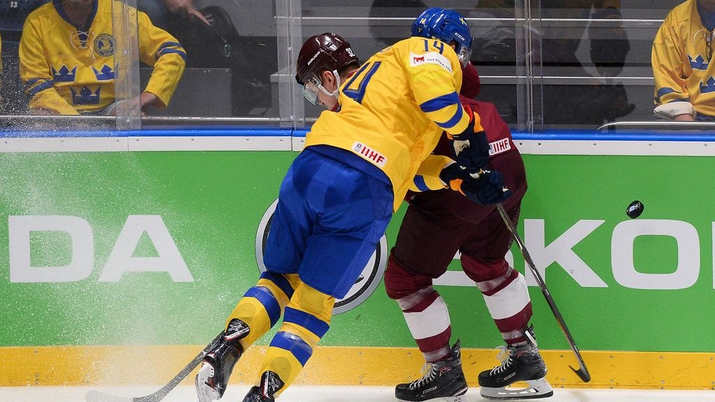 Lukemin 2-1 ottelua johtanut Ruotsi sai kylmää vettä niskaansa kolmannessa erässä, kun Latvia nousi erän alkuhetkillä tasoihin erikoisella osumalla.