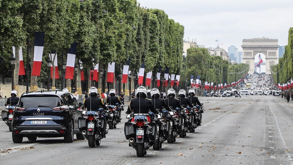 Näyttävä sotilasparaati täytti jälleen Pariisin Champs-Elysees-pääkadun maan kansallispäivänä sunnuntaina. Noin 70 konetta lensi kaupungin yli ja kaduilla nähtiin noin 4 300 sotilasta, 200 ajoneuvoa, 250 hevosta ja 40 helikopteria.