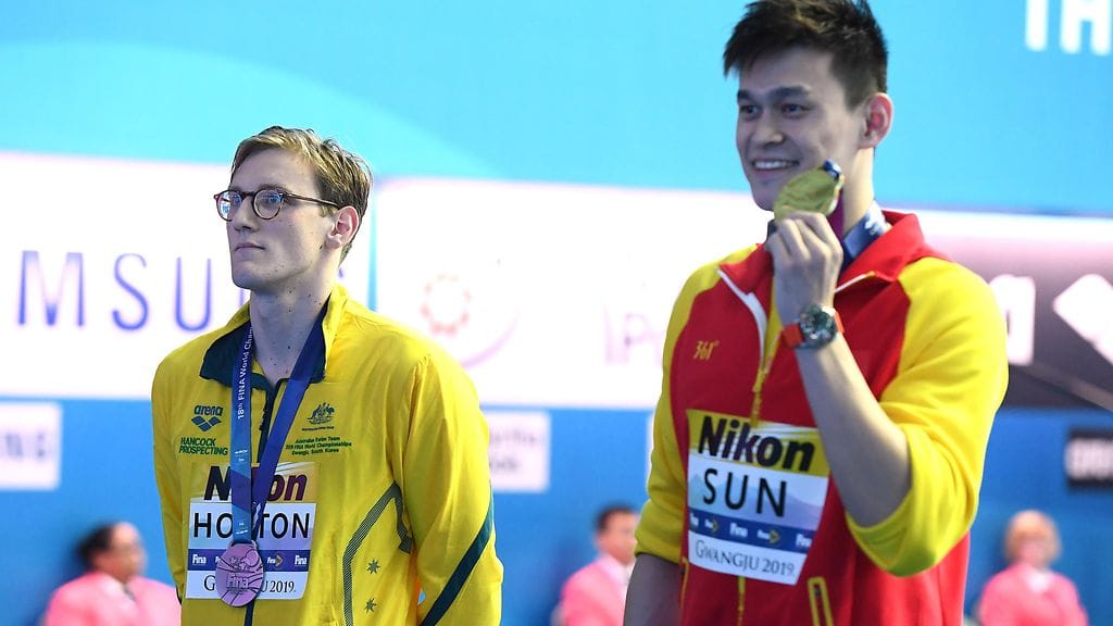 Kiistapari oli altaassa myös varhain tänä aamuna Suomen aikaa, kun Kiinassa kisattiin 800 metrin vapaauinnin finaalipaikoista. Sun eteni huomiseen finaaliin viimeisenä miehenä, mutta Hortonin matka katkesi alkuerissä. He eivät uineet samassa erässä