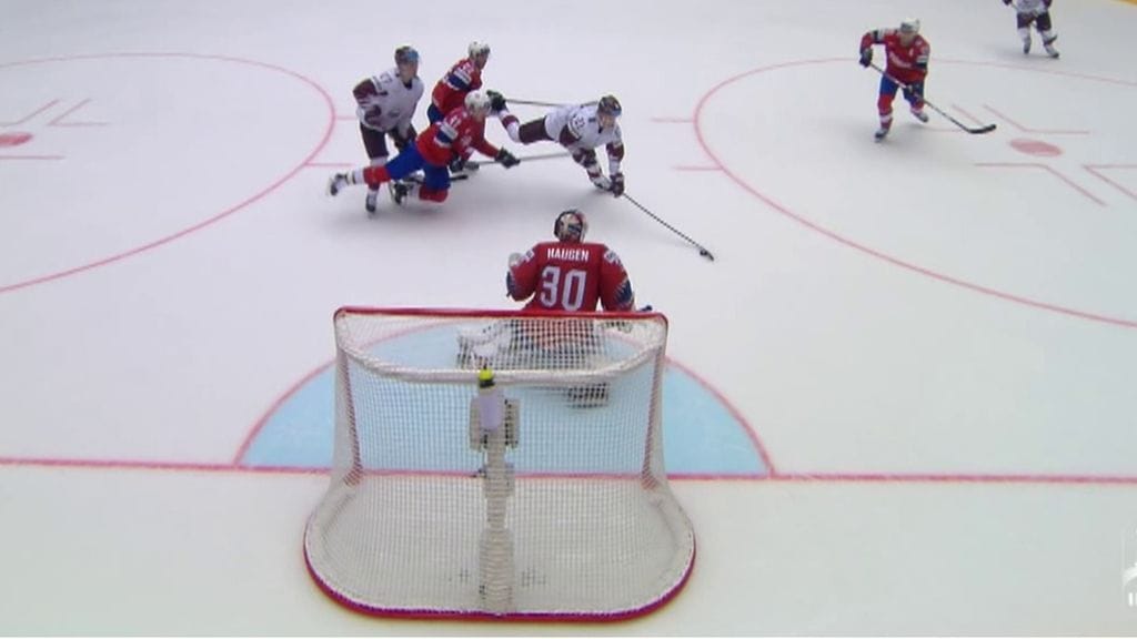 Tämän jälkeen alkoi melkoinen show. Balcers keräsi vauhtia siniviivan tuntumasta, minkä jälkeen häneltä nähtiin näyttävät harhautukset. Lopulta Balcers heitti kiekon rystylle, minkä myötä hän ohitti pahasti etutolpalle liukuneen Norjan maalivahdin Lars Haugenin.